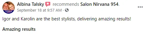 With over 50 years of combined experience Karolin and Igor Zekhtser created the luxury of Salon Nirvana 954, which captures the essence of the tranquil lounge setting and contemporary decor with modern amenities. Our high-end salon is the well-balanced blend of comfort and convenience with every detail polished to perfection.